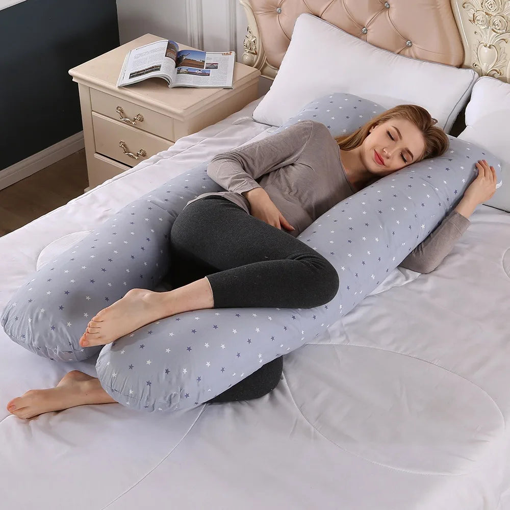 The U-Shaped Pregnancy Pillow is designed to provide full-body support and comfort for expecting mothers, helping to relieve pressure on the back, hips, and belly. Its ergonomic U-shaped design cradles the body, reducing tossing and turning for a more restful sleep. Beyond pregnancy, this versatile pillow can serve as a nursing or breastfeeding support, offering comfort for both mother and baby. It can also be used to elevate the legs, promoting better circulation and reducing swelling.